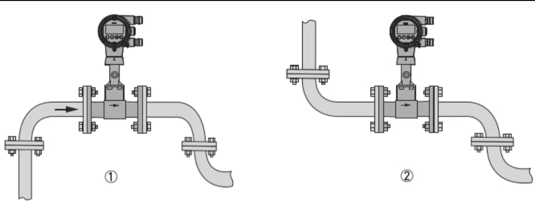 2. Mjerač protoka mora biti instaliran na mjestu koje osigurava da je cijev potpuno ispunjena kako bi se postiglo normalno mjerenje.